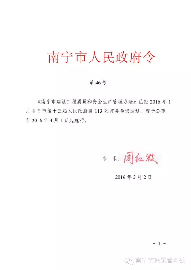 南寧市建設(shè)工程質(zhì)量和安全生產(chǎn)管理辦法