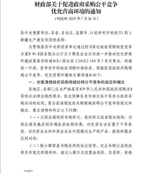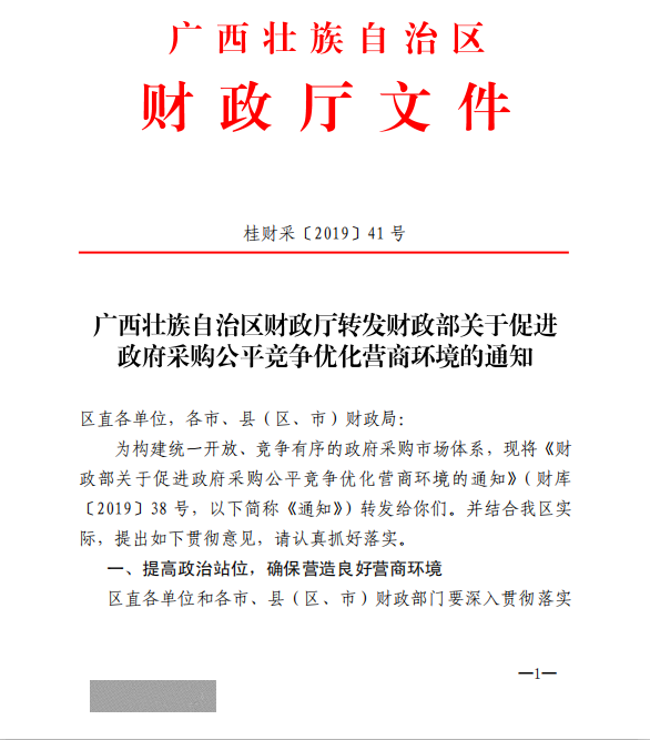 下一篇:南寧市財政局 關(guān)于進(jìn)一步優(yōu)化營商環(huán)境促進(jìn)政府采購公平競爭有關(guān)事項的通知